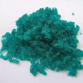 綠色結(jié)晶體,有潮解性,在干燥的空氣中微微風化。相對密度2.05,熔點56.7℃,在95℃時轉(zhuǎn)化為無水鹽,溫度高于110℃時分解,形成堿式鹽,繼續(xù)加熱,生成棕黑色的三氧化鎳和綠色的氧化亞鎳混合物。易溶于水,液氨、氨水、乙醇,微溶于丙酮,水溶液呈酸性,與有機物接觸時,能引起燃燒及爆炸。 吞入有害。